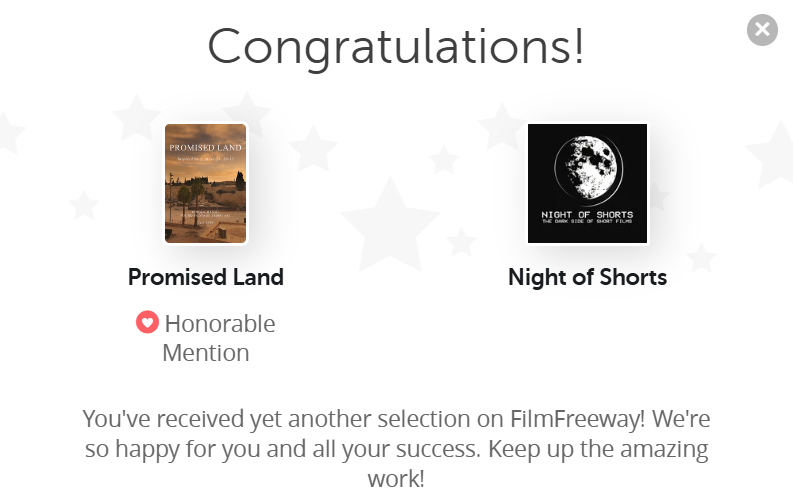 „Promised Land“ erhält eine lobende Erwähnung beim „Night of Shorts“ Festival.
