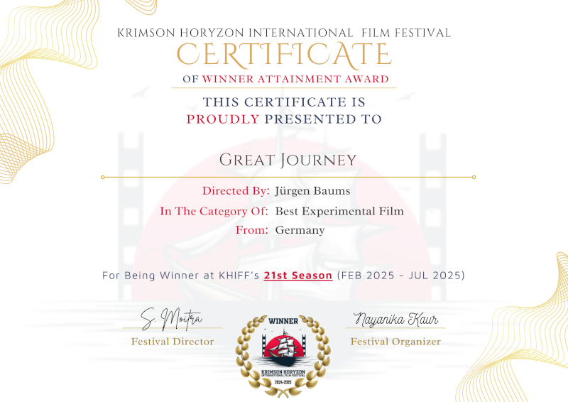 „Great Journey“ Award Winner as „Best Experimental Film“ on „Krimson Horyzon International Film Festival 2025“