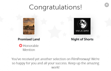 „Promised Land“ Project has been selected as an honorable mention in festival „Night of Shorts“.